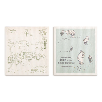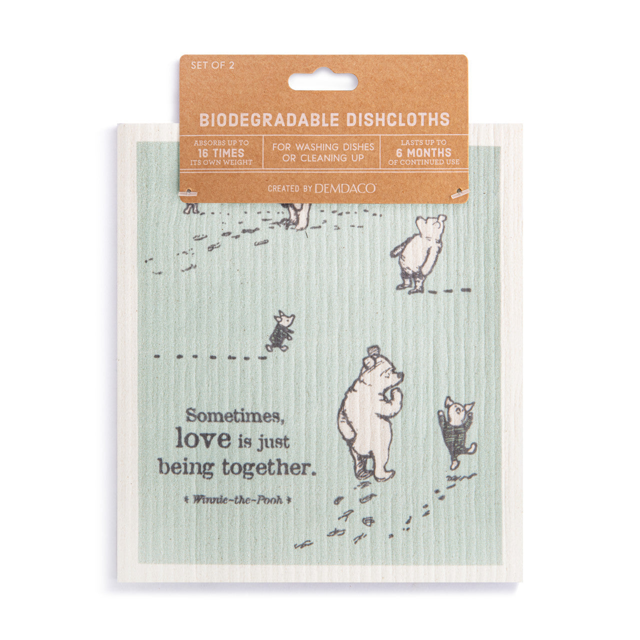 The Biodegradable Dish Cloths Set of 2 - Being Together from our Winnie-the-Pooh Everyday collection is your new right hand in the kitchen. This off-white and green kitchen accessory is a must-have for all your baking, cooking and hosting needs!