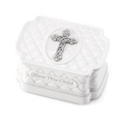 Tender Blessing's elegant keepsakes make perfect gifts for new arrivals and special occasions. This is a beautifully crafted white keepsake box makes a lovely way to treasure their first rosary. It’s the perfect gift for kids and toddlers reaching faith milestones.
