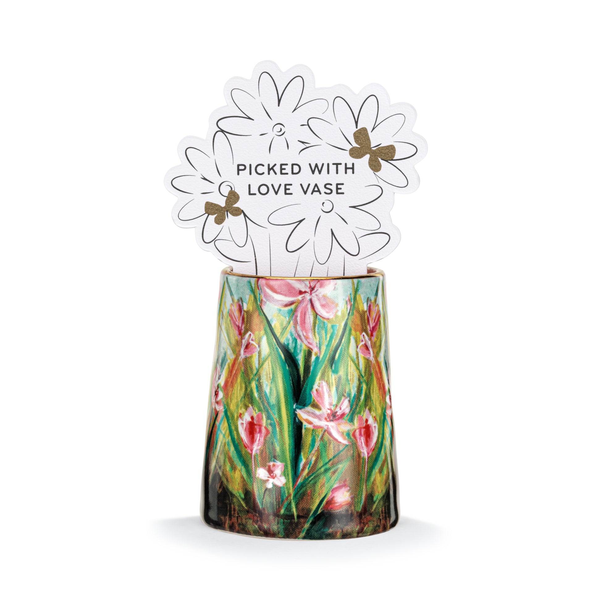 This beautifully imaginative collection of artisan butterfly reproductions, including the Floral Stems Picked With Love Vase - 2x3in, infuses Elisabeth Hays' love of natural elements, mixed media, translucent materials and abstract art to deliver products that represent new beginnings, personal renewal and setting our hearts in hopeful new directions.
