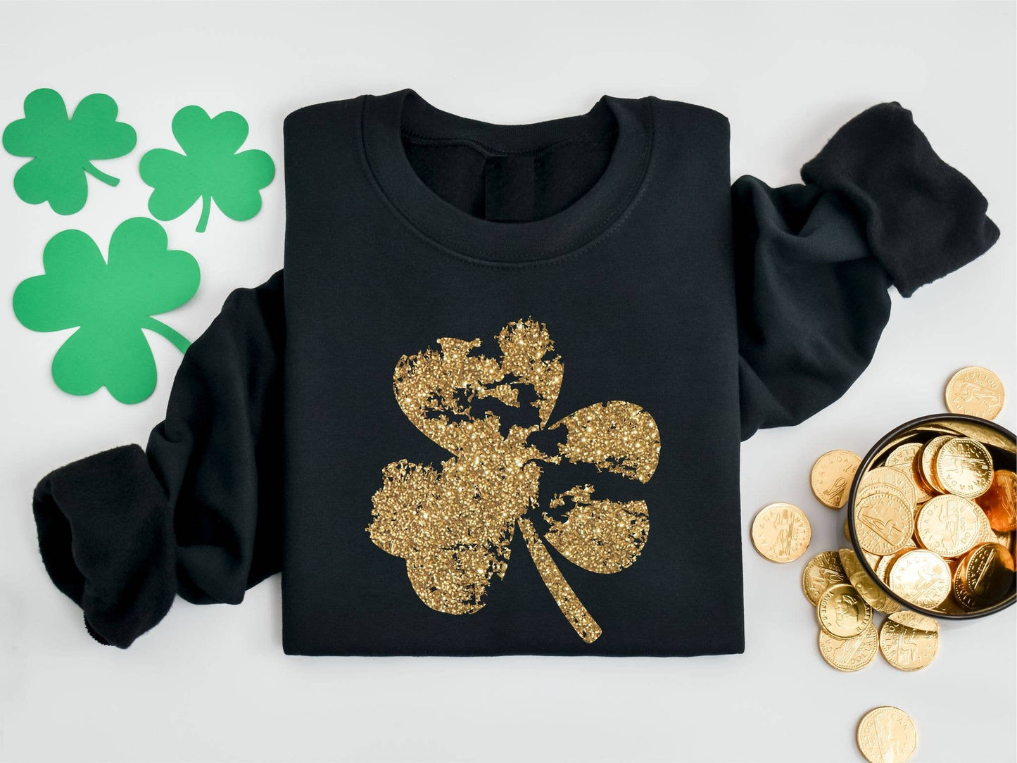 GOLD SHAMROCK BLACK ST PATTY SPRING GRAPHIC TEE SWEATSHIRT * Unisex