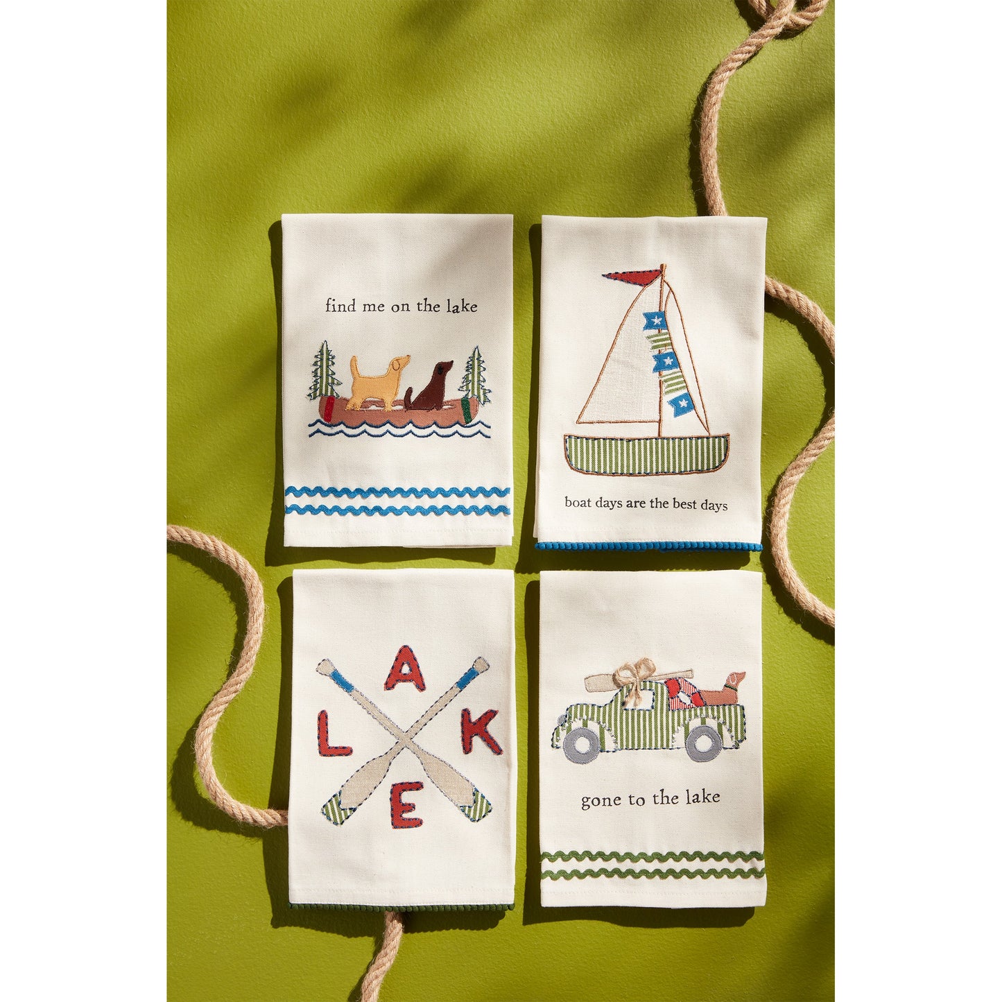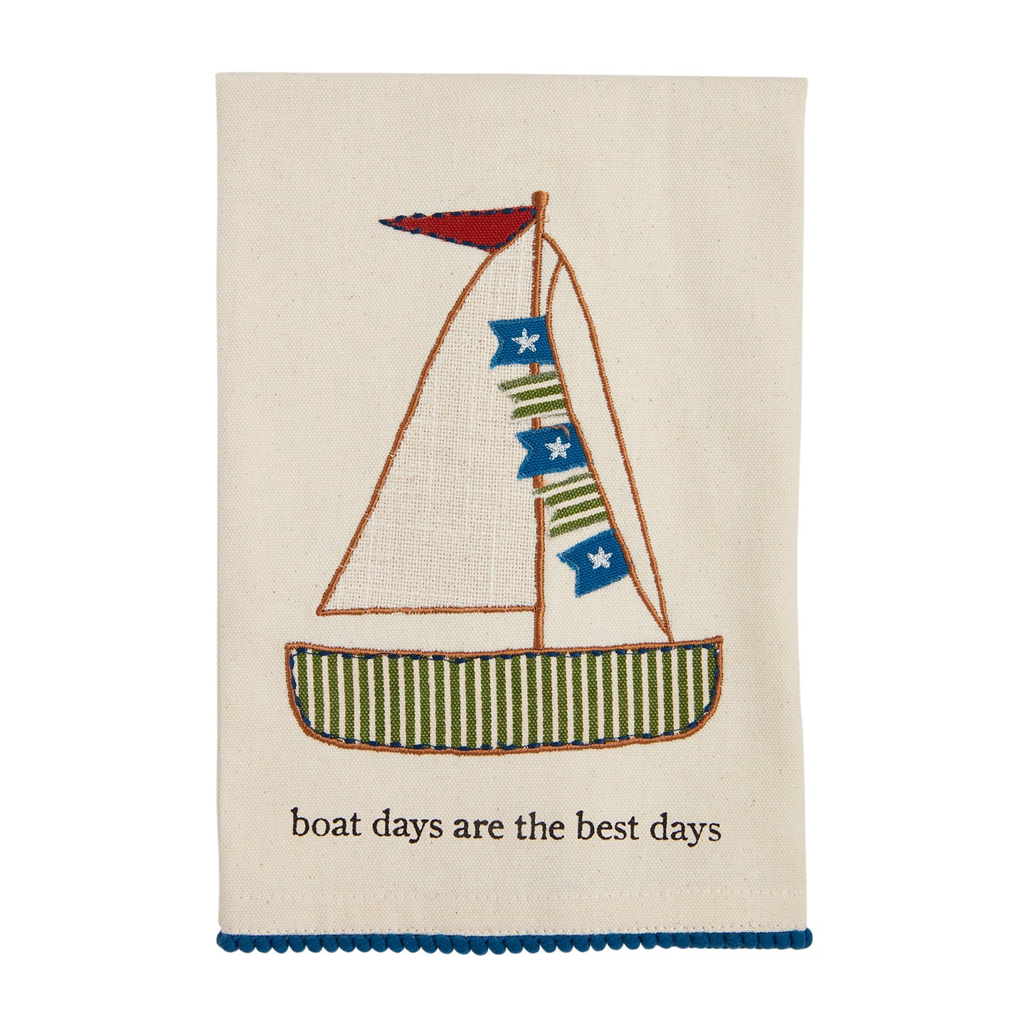 The Boat Days Lake Applique Towel is a must-have for any beach or poolside outing. Crafted from 100% cotton, this towel showcases a stunning boat design on a canvas fabric, creating a one-of-a-kind and captivating appearance. To add a touch of playfulness, the towel is adorned with a pom pom trim. With its spot clean only feature, maintaining the towel's pristine condition is a breeze. Whether you're relaxing by the water or drying off after a refreshing swim, this Boat Days Lake Applique Towel is the perfect accessory to complete your ensemble.