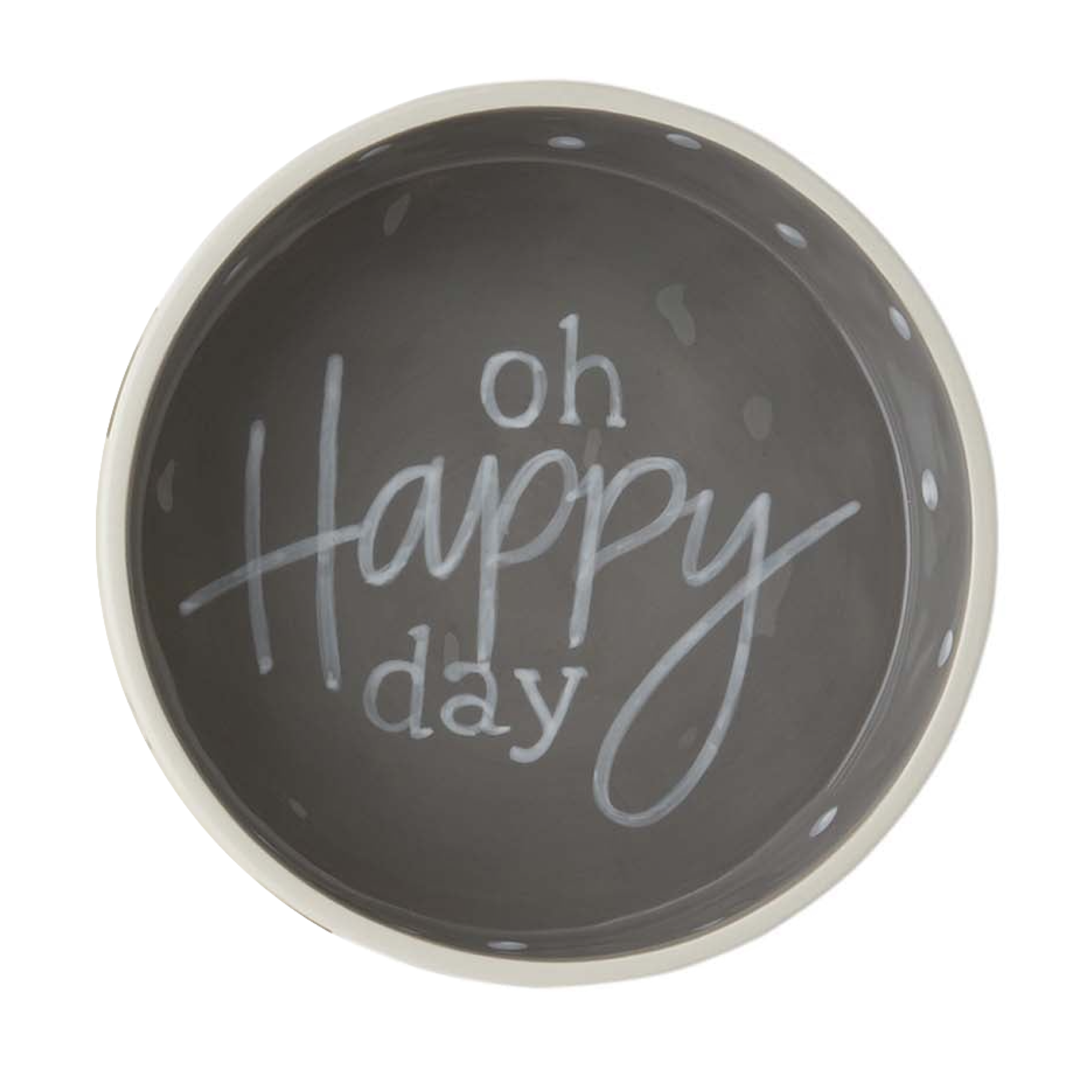- Dish reads "oh happy day" and measures 2 1/4" x 8 1/2" dia"