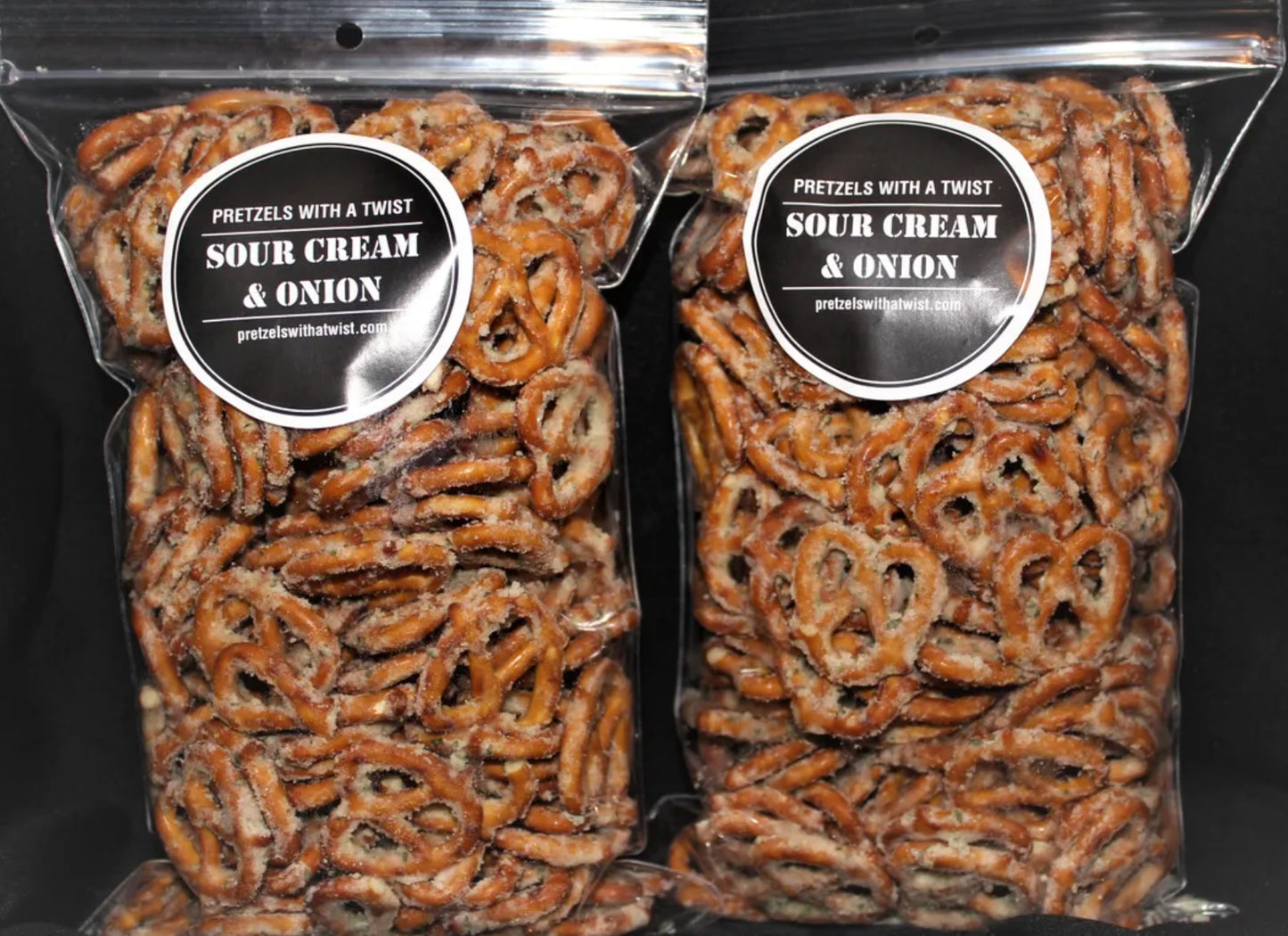 These crisp and crunchy mini twist pretzels are seasoned with our Sour Cream and Onion seasoning and will be sure to please your tastebuds. This classic blend of sour cream and onion with just a hint of sweet will satisfy even the most intense snack cravings.