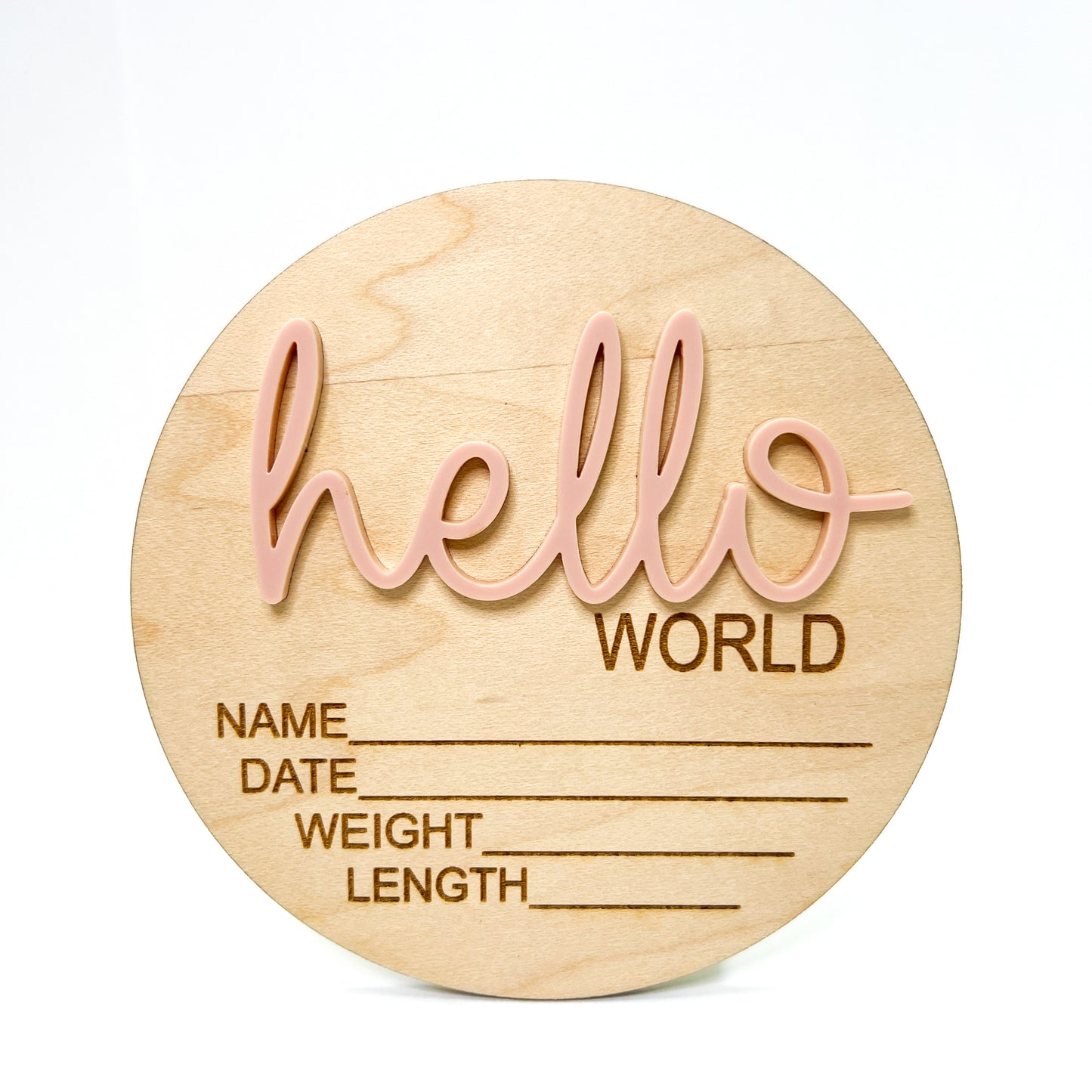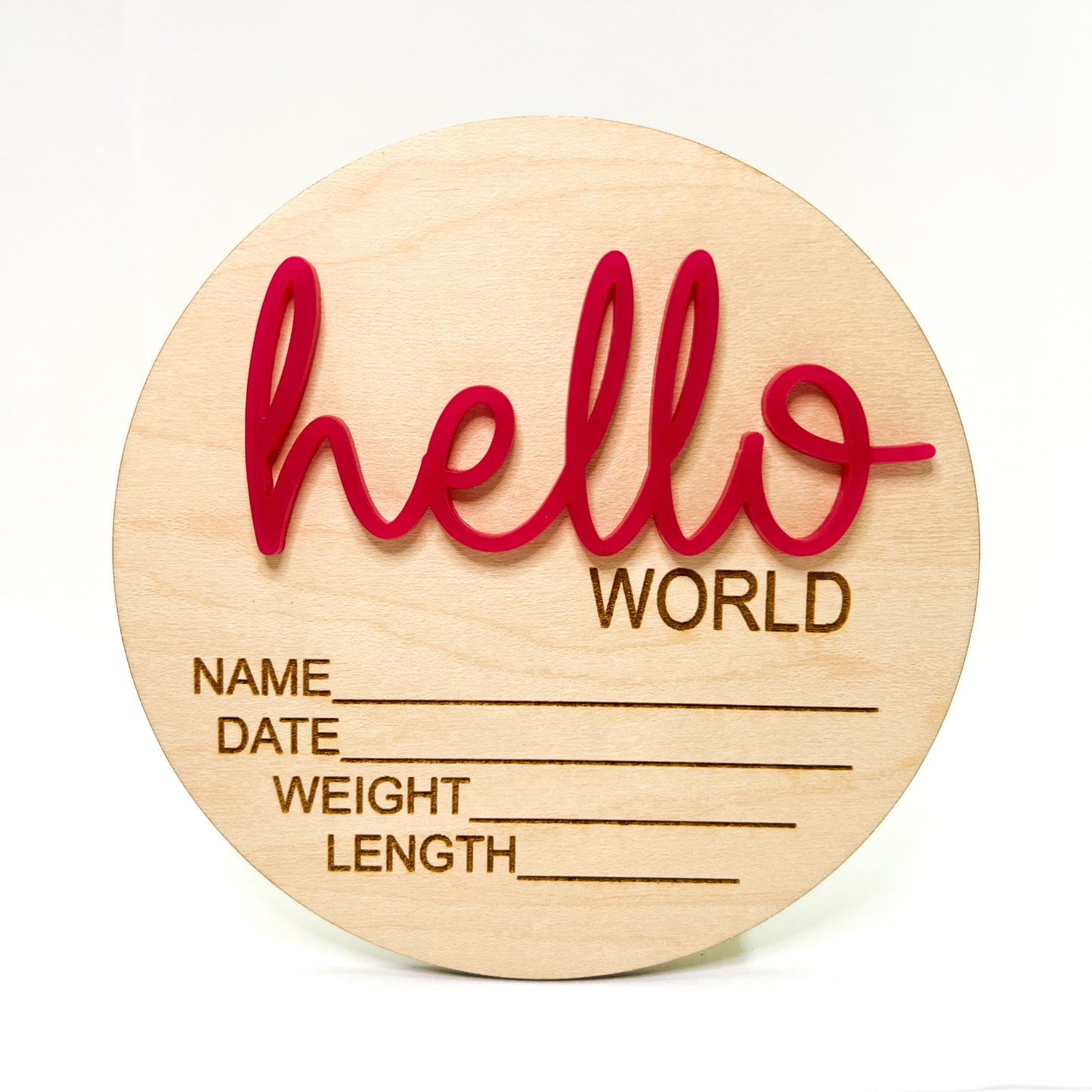 - • 1/8" inch thick maple with 1/8" acrylic layer of hello world